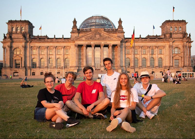 Programa de inmersión lingüística en Alemania, Austria o Suiza con clases de alemán, actividades culturales y excursiones, diseñado para que los estudiantes practiquen el idioma en situaciones reales dentro de un entorno internacional.